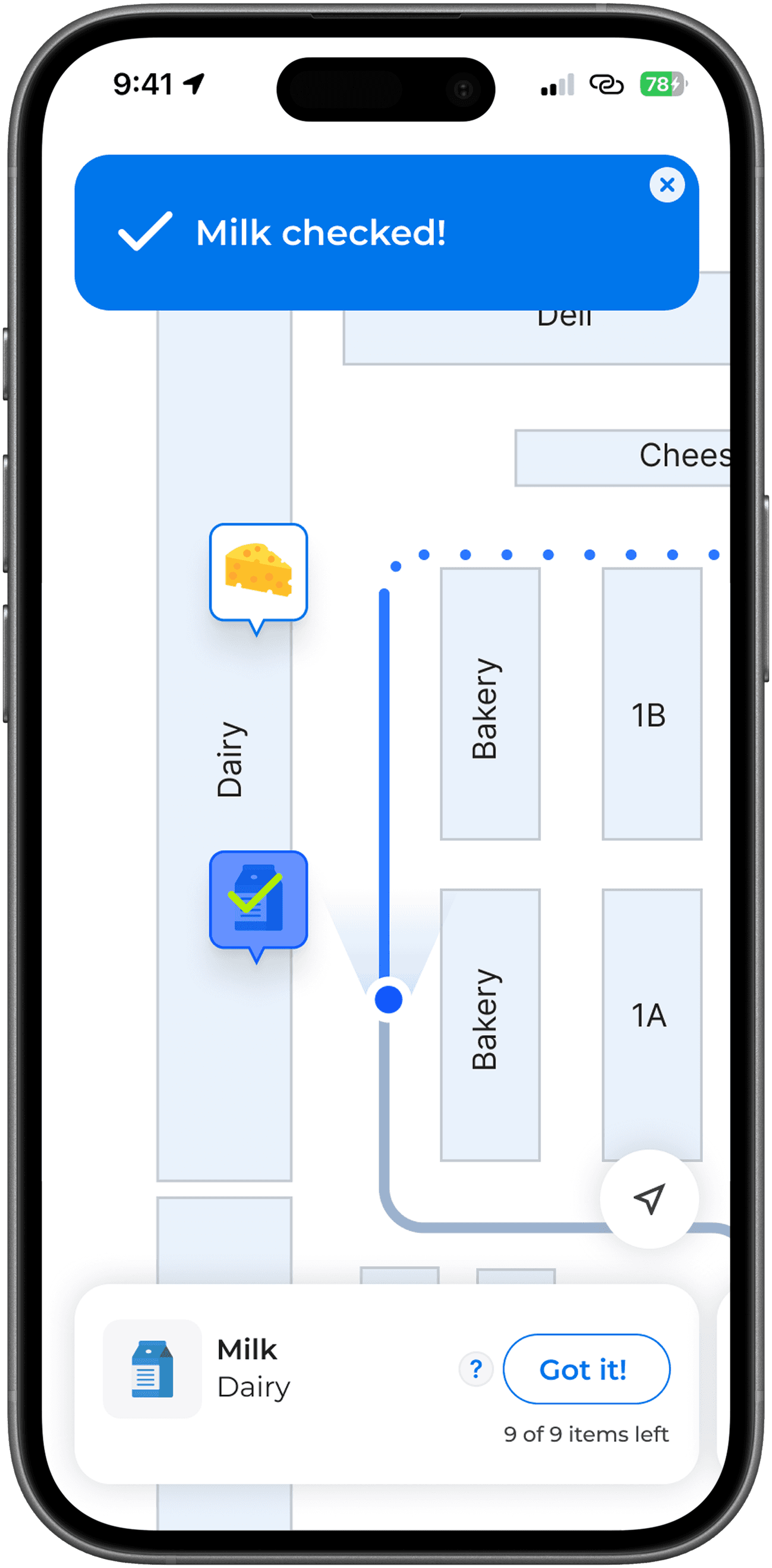 User can go directly to the items they need with in-store navigation that guides them along the most efficient route.